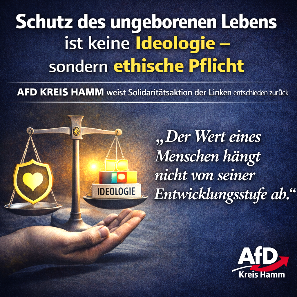 Pressemitteilung – AfD Kreisverband Hamm weist Solidaritätsaktion der Linken mit Abtreibungsarzt entschieden zurück – Schutz des ungeborenen Lebens ist kein „Ideologieproblem“, sondern ethische Pflicht